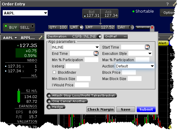 | Blockfinder | 选取启动Blockfinder,用于提交执行的大定单尺寸(最低10,000股) ,剩余的尺寸连续通过算法执行。 |