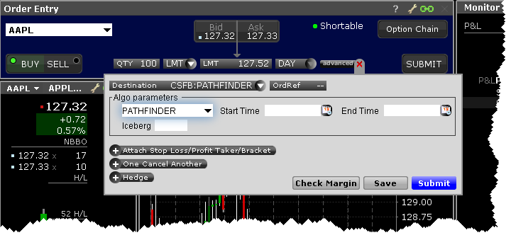 使用CSFB算法,选择 CSFBALGO为 定单传递目的地,然后选择算法。