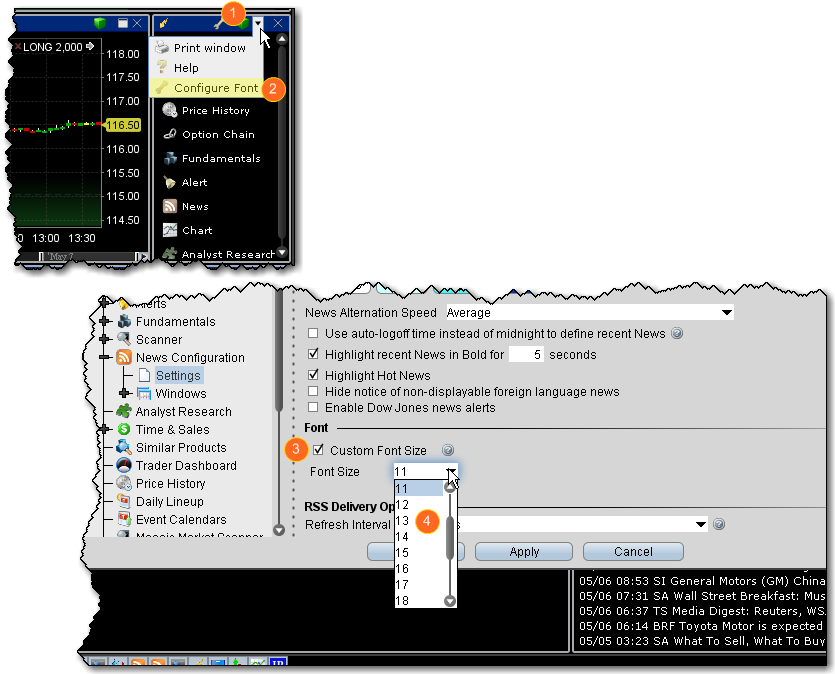 You can configure font size on a per window/per tool basis wherever available, as well as through the Global Configuration > Display > Style page.