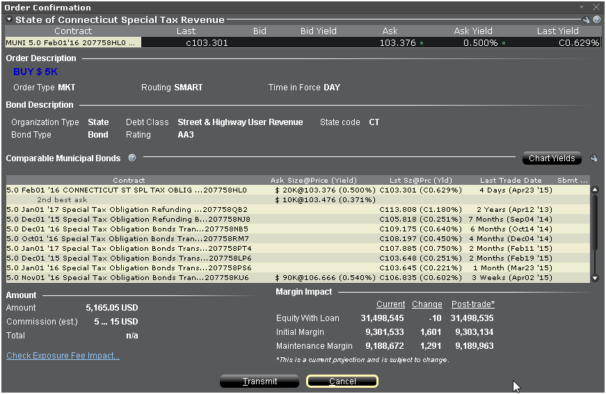 - In the Comparable Bonds screen, submit an RFQ, compare your bond to others that are comparable, and transmit your order.