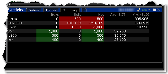 交易总结窗口显示所有当天的买和卖,并以底层证券分组。