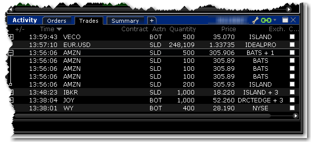 交易窗口显示按时间和底层证券的当天的交易。