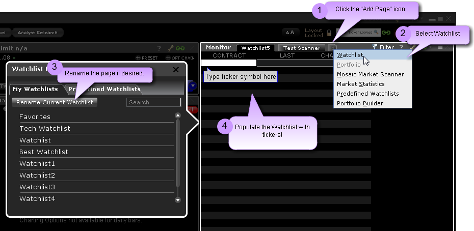 在标准模式TWS中添加监控列表