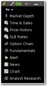 魔方界面工具箱包括一组预设设置的和有用工具的链接,通过窗口组合将它们链接到主魔方组中。点击一项打开包含选取底层证券信息的工具。