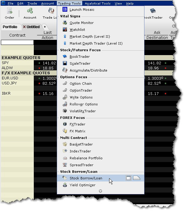 另外,你可以通过一个正常交易页面管理借/贷交易,做法是先输入底层股票代码,然后选择SBL做为产品类型。你需要通过使用布局管理来手动添加相关借/贷区域。