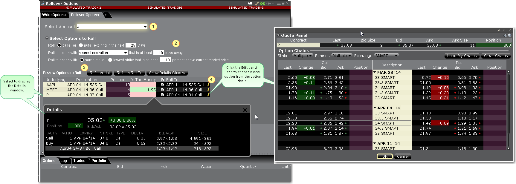 快速查看所有你子账户中将要过期的期权,将其延期为具有迟后过期日的类似期权。