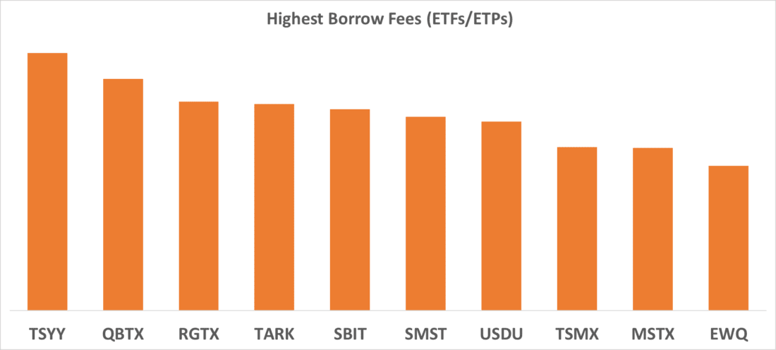 Highest Borrow Fees (ETFs / ETPs)
