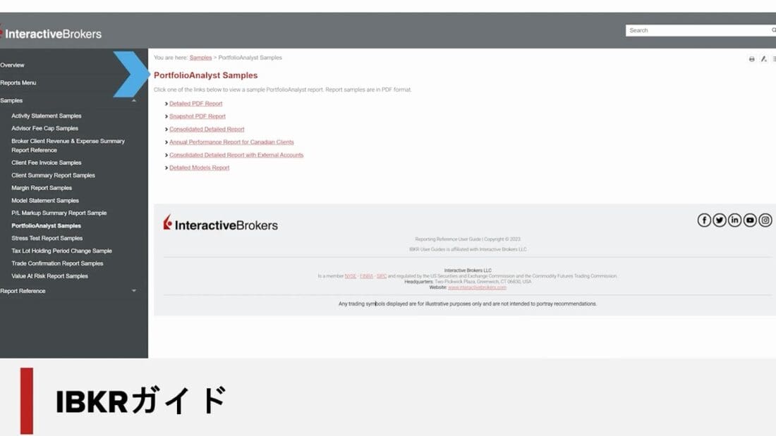 トレーダーズ・アカデミーポートフォリオアナリストと投資レポートのコースで、さらに知識を深めてください。また、 IBKRガイドでは、作成可能なレポートのサンプルや、口座管理に役立つその他のトピックをご覧いただけます。