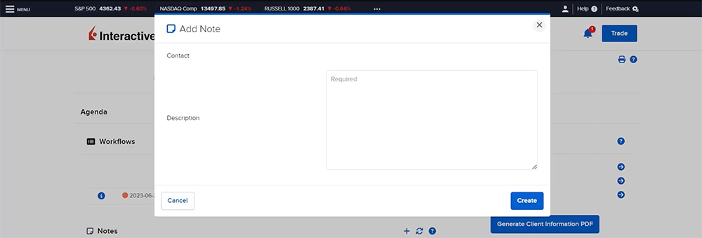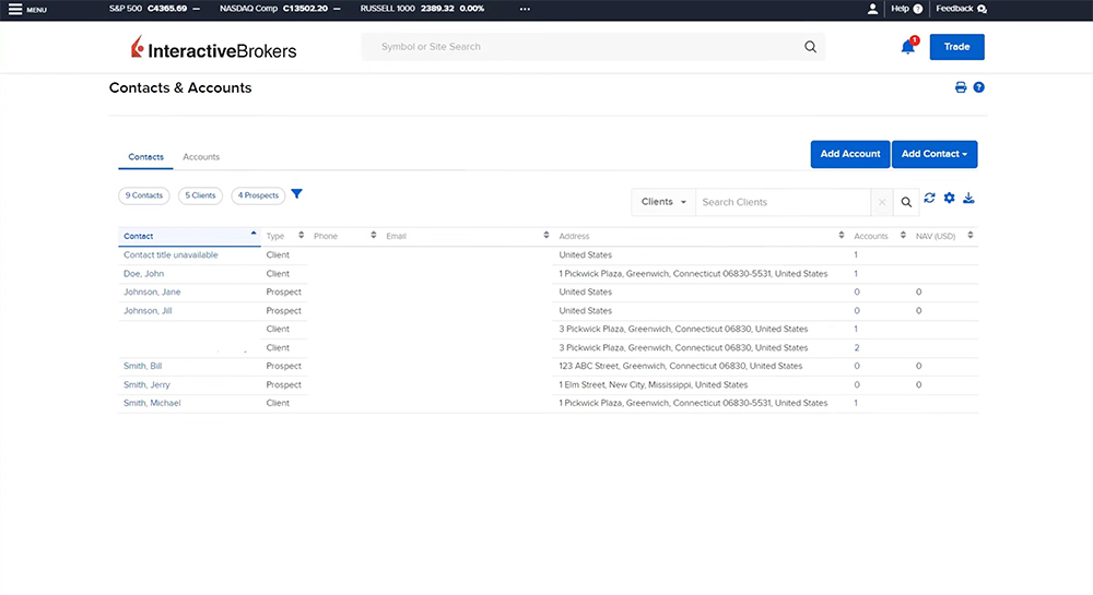 The IBKR Advisor Portal has an integrated suite of Client Relationship Management (or CRM) tools that help financial advisors manage information about their clients and prospective clients.