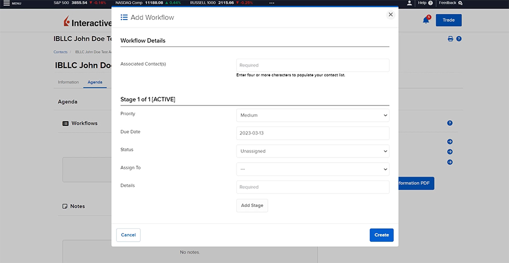 For example, the advisor may want to set a task to provide the client with a year-to-date performance report for their upcoming meeting. The advisor can set the priority and due date for each stage and assign the stage to a specific user, such as a member of the advisor’s reporting team. If there are multiple tasks to be completed for the client, click the Add Stage button, and enter the details in the same manner as the first stage. For example, if the trading team needs to review the client’s holdings and their target allocations. The Workflows are sorted by date then by priority and the workflows can be edited or deleted at any time.
