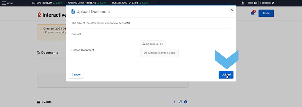 *Please note this feature is not a document submission queue for new account application documents. The documents uploaded here are stored on Rackspace for security and this data cannot be accessed by Interactive Brokers.