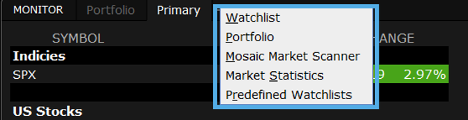 - A Mosaicban könnyedén hozzáadhat új Figyelőlistákat: kattintson bal egérgombbal a plusz jelre, majd az első menüpontra (Watchlist).