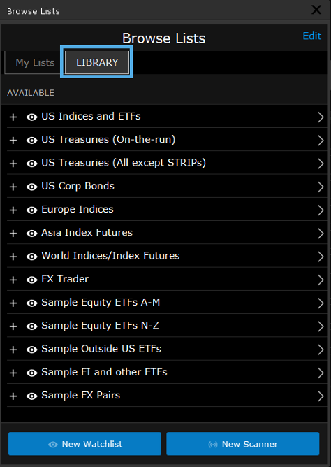 - Kattintson egy figyelőlistára az AVAILABLE (ELÉRHETŐ) részben, tekintse át a listában szereplő instrumentumokat, és döntse el, felveszi-e a Figyelőlistát a Monitor Panelbe.
