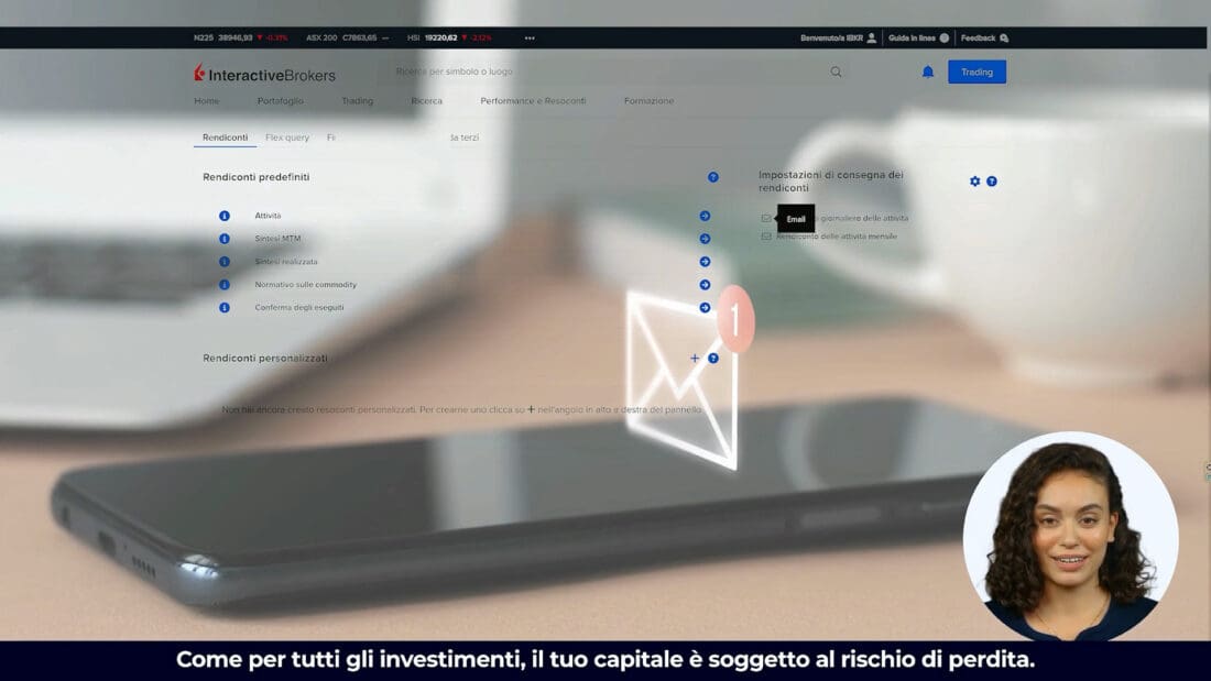 Tra le tante funzioni, questa piattaforma consente di generare rendiconti delle attività giornalieri e mensili, che possono essere inviati automaticamente, anche via e-mail. È inoltre possibile eseguire una serie di rendiconti predefiniti, questi ultimi comprendono non solo l’attività, ma anche i riepiloghi del mark-to-market e le conferme di negoziazione, tra gli altri; potrai scegliere se visualizzare o scaricare questi documenti. Questi rendiconti inoltre non si limitano alle selezioni predefinite. I clienti possono infatti creare dei rendiconti personalizzati, con una moltitudine di sezioni, configurazioni e opzioni di consegna tra cui scegliere. È inoltre possibile personalizzare il rendiconto per riflettere un periodo, una data o un intervallo di date specifico, nonché la lingua desiderata, come indicato e in base alle tue necessità.