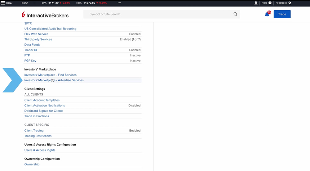 Hedge Funds who wish to participate can apply to the program from their Portal by clicking the Head & Shoulders icon in the upper right corner, followed by Settings. Underneath the Investors’ Marketplace section, click Advertise Services. Underneath the Investing section, select Hedge Funds and follow the onscreen instructions to complete the Hedge Fund Capital Introduction Program (HFCIP) application.