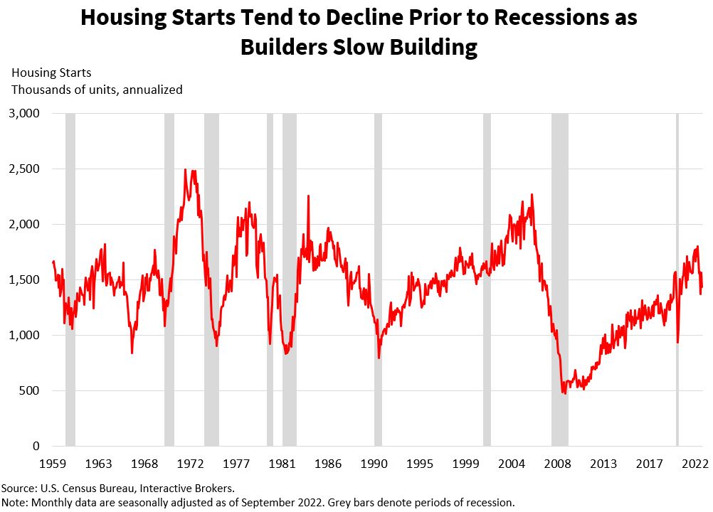 The COVID-19 pandemic illustrates this point. It resulted in record-low interest rates as the Federal Reserve pumped liquidity into the economy to fight the economic downturn resulting from measures to contain the virus. Additionally, many households fled the nation’s largest cities for less densely populated areas. These developments propelled the number of starts to decade highs, levels only reached prior to the 2008 financial crisis. Strong demand for household items for making home offices as remote work became the norm accompanied this trend. Slowing construction activity, on the other hand, is typically an indication of underlying weakness in the economy and reflects one or more of the many variables that influence the real estate sector. If the real estate market slows down in the U.S. like it did during the 2008 financial crisis when housing starts declined dramatically, the information will likely reflect slowing economic growth and weakness across many economic data points.