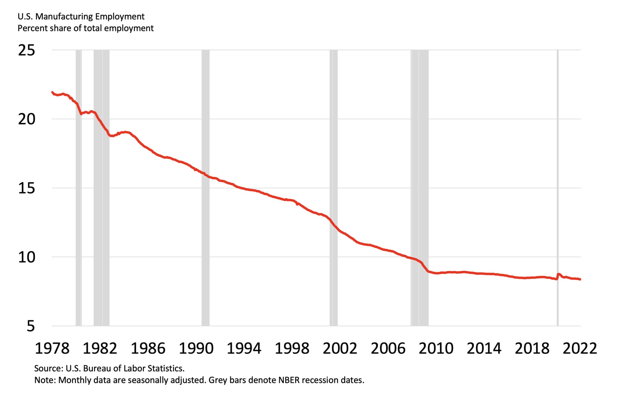 Manufacturing’s Share of Total Employment Fell From 22 Percent in 1978 to 8 Percent today