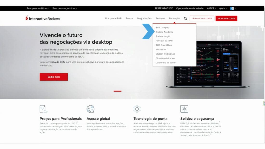 É importante observar que os clientes também podem aprender a navegar em nossas plataformas de negociação – e em muitas das ferramentas e serviços da IBKR – por meio dos tutoriais em vídeo gratuitos disponíveis em nosso site. Basta visitar a página Traders’ Academy da IBKR no menu Formação.