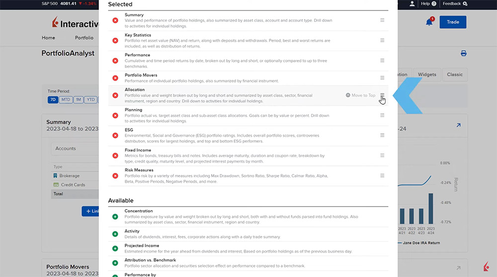 How to Customize the Widgets in the IBKR Portfolio Analyst