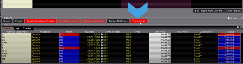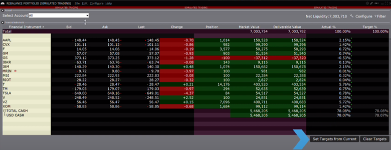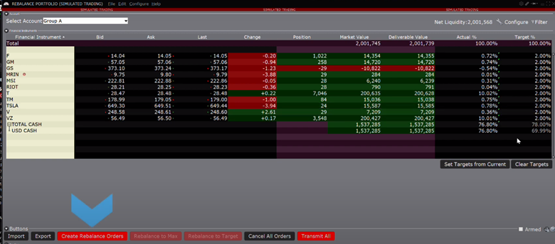 Once you are satisfied with the Target % weights click on the red “Create Rebalance Orders” button to populate the trading window.