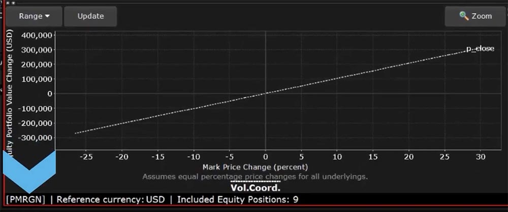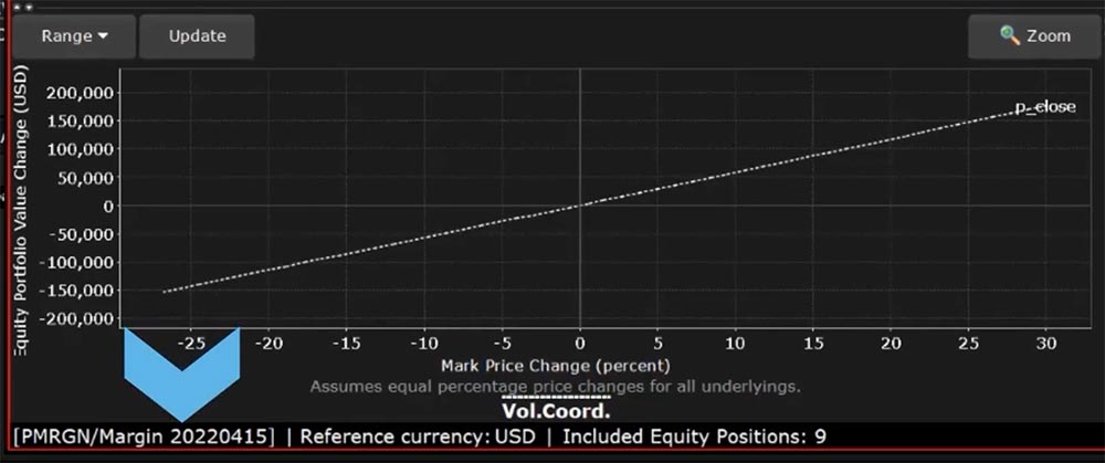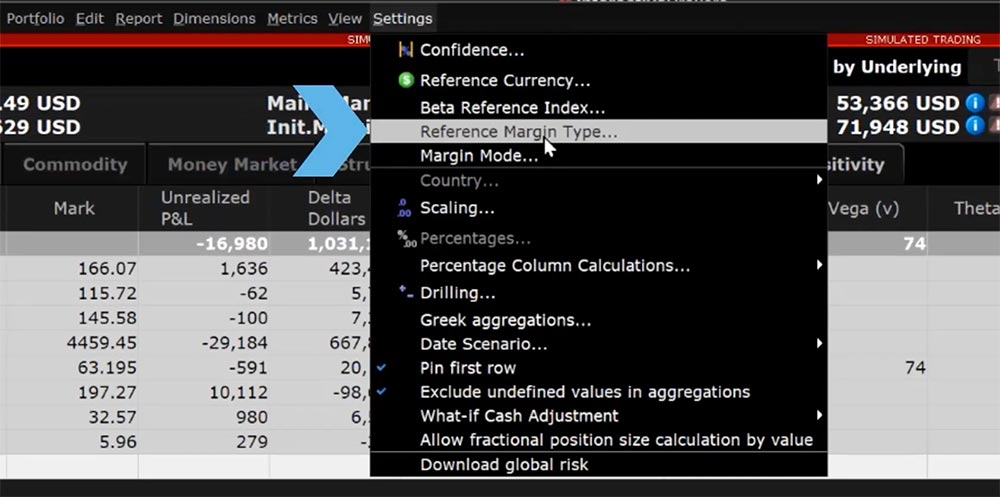 However, it is possible to view how your margin requirements would differ for the same portfolio under a different margin configuration. For example, if your account is currently configured for Reg T Margin but would like to see your projected margin requirements under Portfolio Margin, you can change the reference margin type within Risk Navigator.