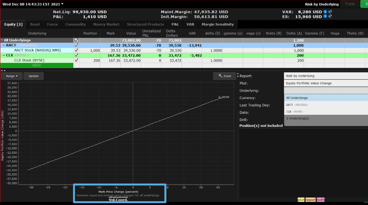 And then see the Value at Risk report for Scenario analysis on your individual positions.