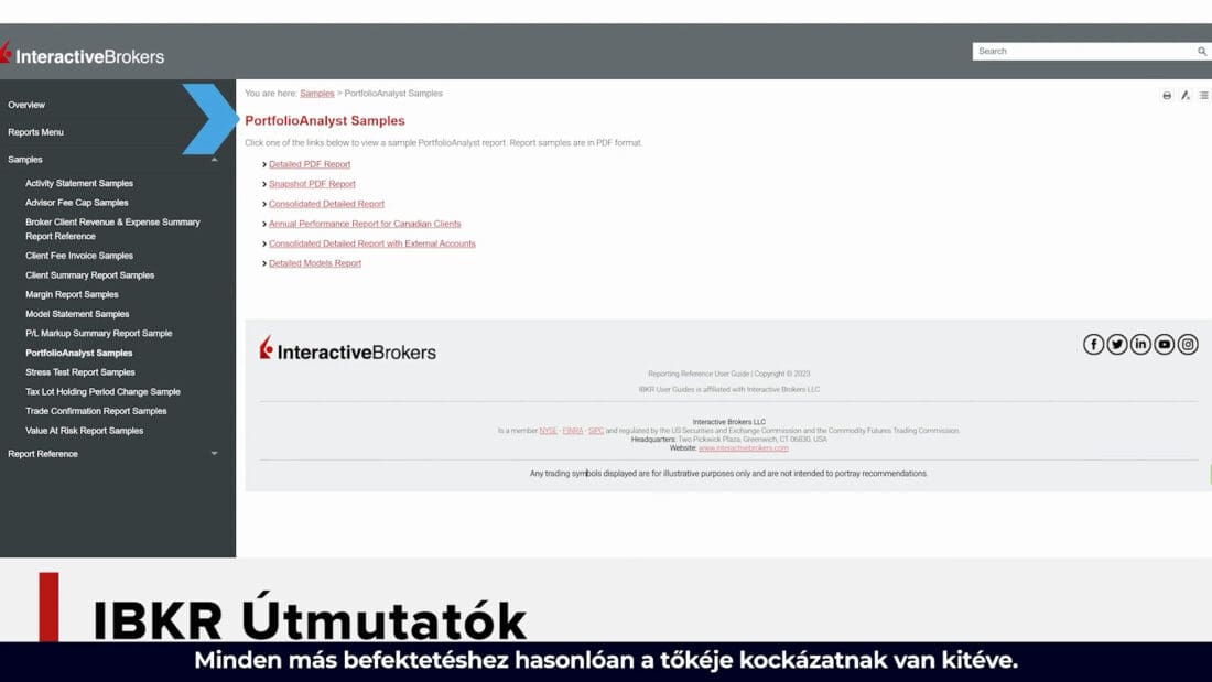 További információkért végezze el a PortfolioAnalyst és a Befektetési jelentések tanfolyamot a Traders’ Academy-ben; illetve a lehetséges jelentésminták, valamint a számlakezelés során hasznos más funkciók széles tárházának megtekintéséhez látogasson el az IBKR Útmutatók oldalra.