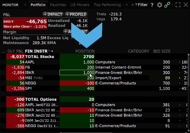 Now that the orders have been filled you can check the Portfolio tab in Mosaic or Classic TWS and verify that the overall positions in your portfolio of the instruments you entered in the What-if equal the quantity you set.