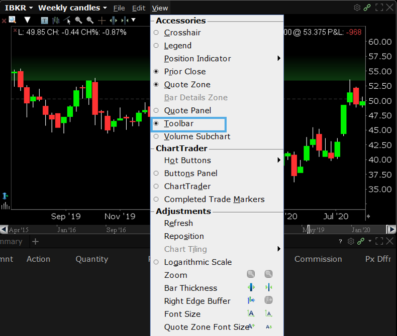 You should also be able to navigate and apply the vast selections of icons that can be added to the toolbar to enhance your use of TWS charts.