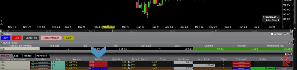 You may adjust the respective limit prices in the order entry panel or reposition on the chart before transmitting the order. Only when the parent order fills do the bracket portions of the order become active.