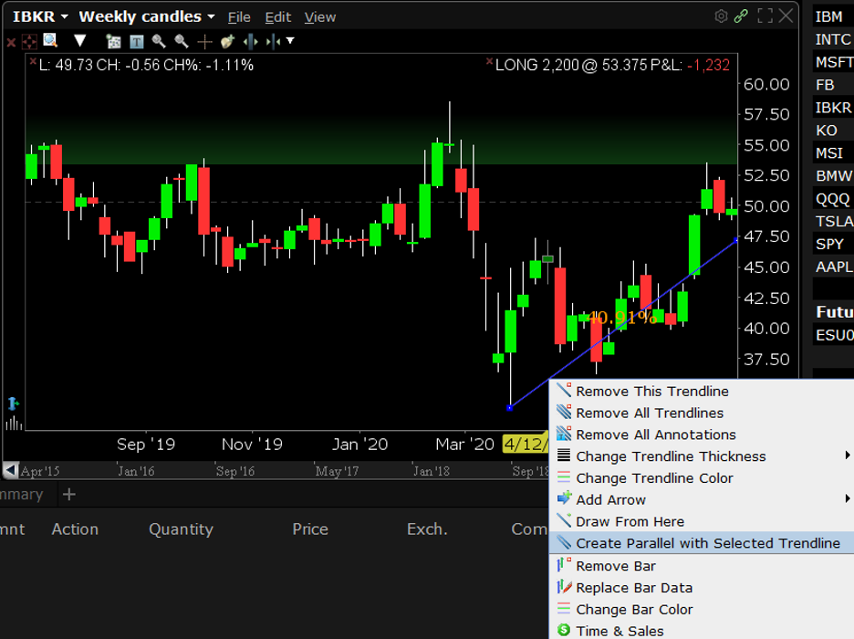 Now that you are familiar with adding trendlines of support and resistance to your TWS charts, let’s move on to the next charting lesson in Traders’ Academy.