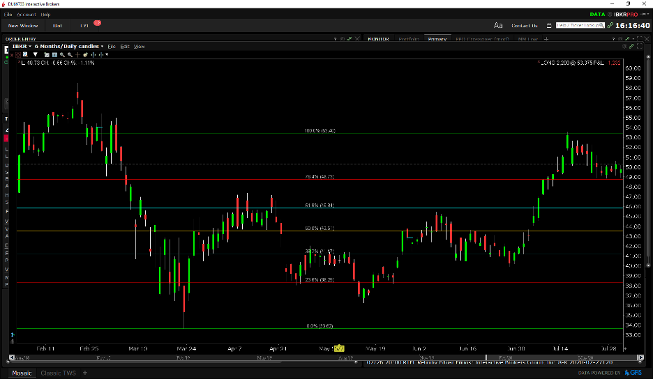 You will see the popular retracements displayed on the chart, which are commonly thought to offer support and resistance.