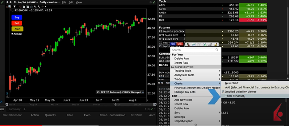 I’ll right-click on NYMEX-listed crude oil futures, then select term structure from the expanded display.