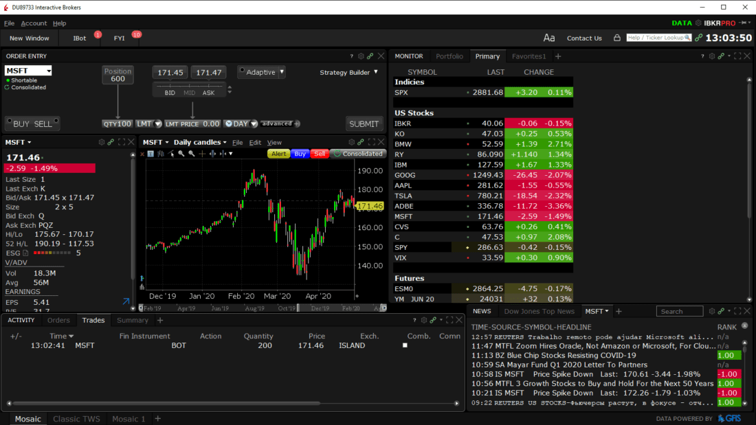 TWS Mosaic для своих целей, добавлять тикеры и создавать ордера.