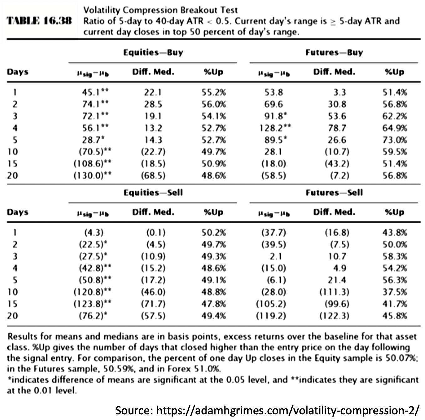 • Big moves out of compression are likely to continuation. In other words, momentum is likely to “win”.