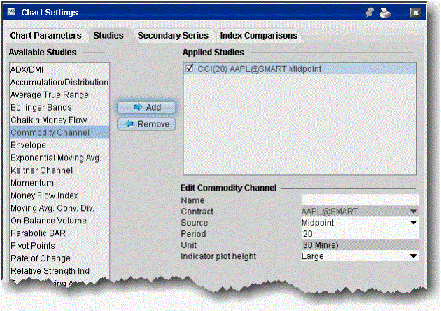 - 选取商品通道(Commodity Channel )和添加该指标。